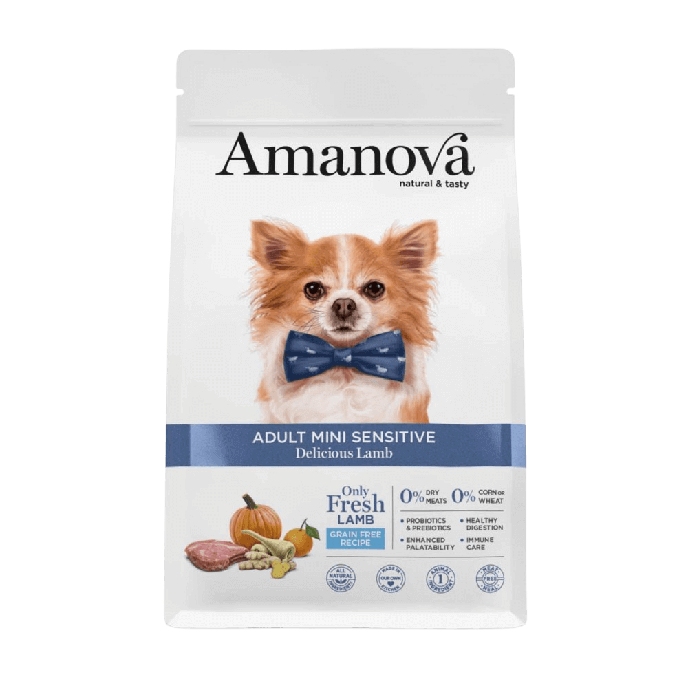- ¡Cuida la digestión y la piel de tu perro mini con Amanova Adult Mini Sensitive Cordero Fresco! Compra ahora y dale a tu mascota una alimentación saludable y deliciosa.