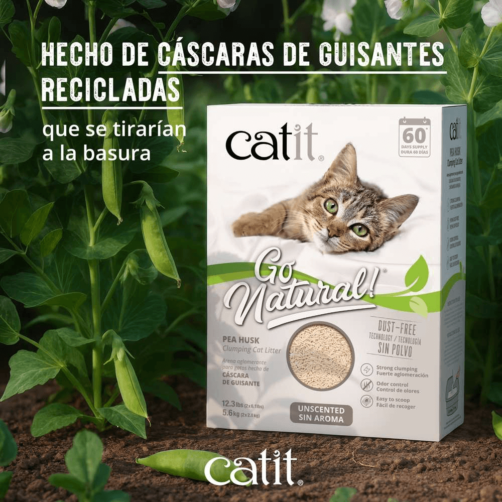 Catit Go Natural es una nueva gama de arenas para gatos ecológicas hechas a base de recursos sostenibles. De hecho, a diferencia de muchas arenas minerales, las vegetales son una opción más segura para los gatos y totalmente respetuosa con el planeta. ¡Al fin, tu gato puede “hacer sus cosas” como lo haría en la naturaleza! Este producto es la variante Sin Aroma, ideal para gatos y dueños sensibles a los perfumes. La Arena Catit Cáscara Guisante es una opción superior.