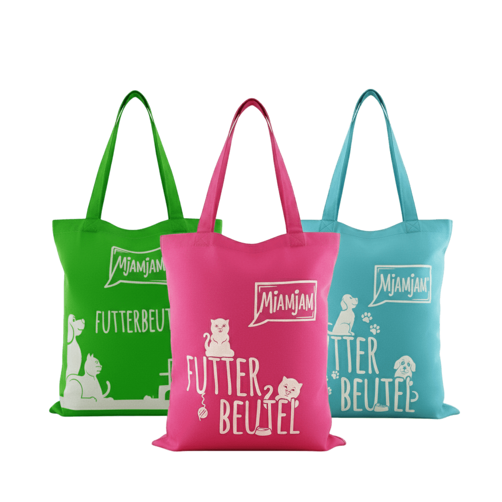 ¡De compras! ¿No te has olvidado de algo? Exactamente, la bolsa de la compra. Con nuestras exclusivas Bolsas de Compra Reutilizables MjAMjAM, darás un toque diferente a tus recados diarios. No solo llamarás la atención con sus coloridos y originales diseños. Además, les mostrarás a todos cuál es la comida favorita de tu mascota. Y lo mejor de todo: estarás contribuyendo a un planeta más limpio al reducir el uso de plástico.