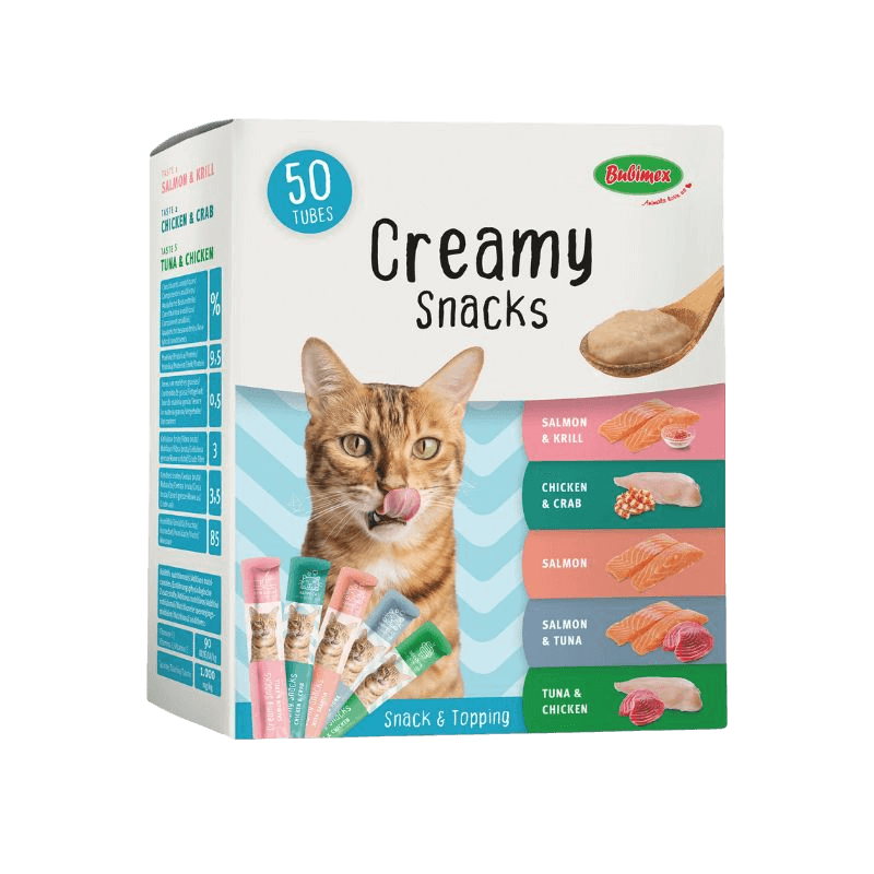 En Anlú, sabemos cuánto amas consentir a tu gato. Por eso, hemos seleccionado el Creamy Snacks – Multipack de 50 unidades. Son snacks en formato crema. Son perfectos para recompensar a tu gato de forma continua. Estos caprichos son ligeros e hidratantes. Su textura cremosa facilita que tu gato los lama directamente del envase. Así, puedes reforzar el vínculo especial con tu felino cada día. Estos momentos son únicos y muy valiosos.