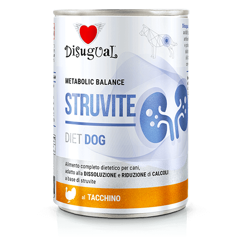El paté Disugual Estruvita Pavo Perro es un alimento húmedo dietético completo de la línea Metabolic Balance, formulado específicamente para perros que requieren un soporte nutricional para la disolución y reducción de cálculos de estruvita. Esta receta es un apoyo esencial para perros con patologías urinarias que requieren una dieta específica.