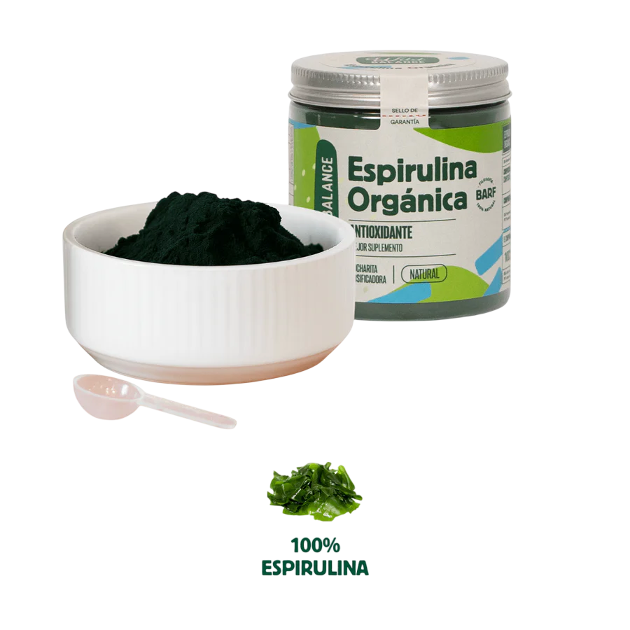 Este suplemento 100% natural es mundialmente conocido por su alto contenido en proteínas (60%), minerales y vitaminas. La espirulina actúa como un potente antioxidante que ayuda a combatir los radicales libres y favorece la recuperación de la vitalidad en mascotas que se sienten más cansadas o necesitan un refuerzo en su sistema inmunológico. Gracias a su riqueza en clorofila, es un excelente aliado para ayudar a desintoxicar el organismo de forma natural.