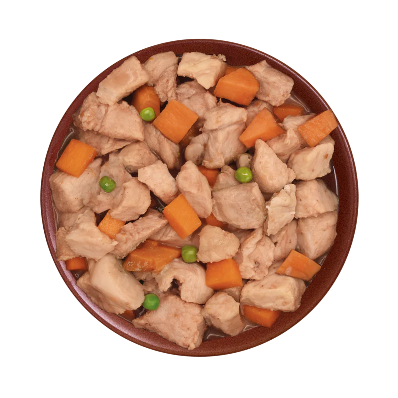 COMPOSICIÓN: 97% Cerdo fresco en su salsa, guisantes, zanahoria, boniato, especias.