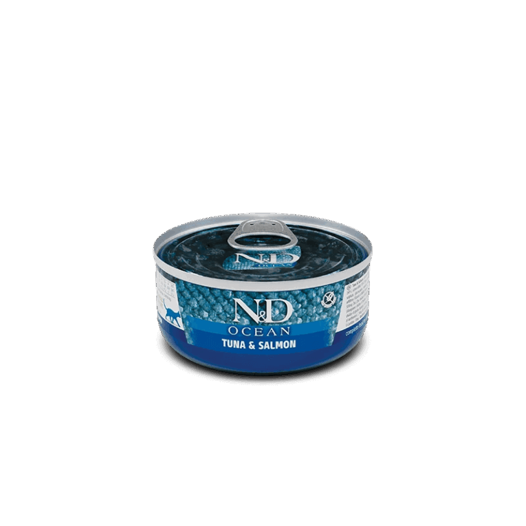 Deleita a tu gato adulto con la exquisita combinación de atún y salmón en Farmina N&D Ocean. Si buscas una Comida Húmeda Gato Atún Salmón que ofrezca una doble porción de sabores marinos y una nutrición óptima, esta receta es perfecta.