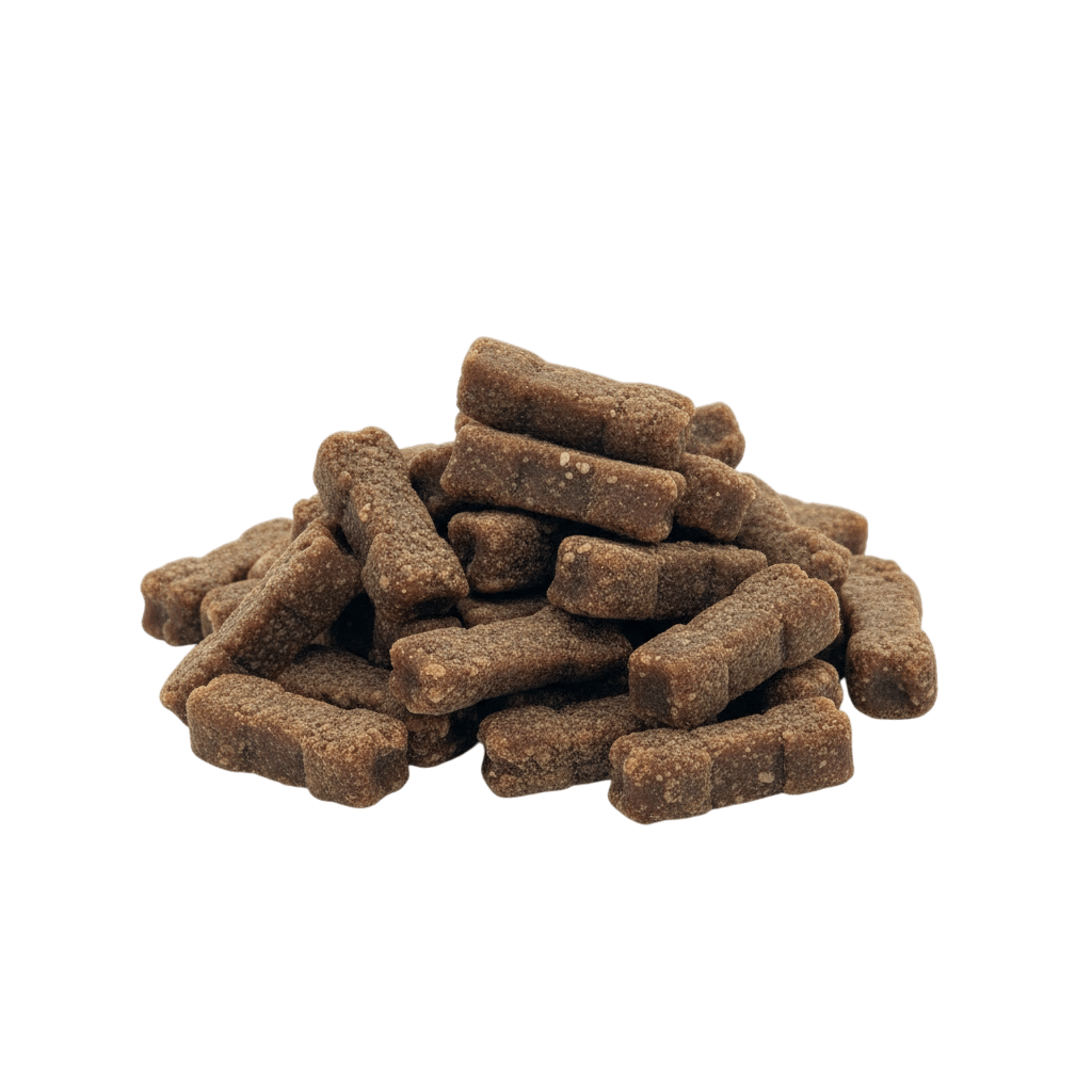 En Piensos Anlú sabemos que la educación de un cachorro requiere motivación, y estos snacks semihúmedos en forma de mini huesitos son irresistibles. Elaborados con un 60% de pollo fresco, incluyen además leche maternizada, frutas y vegetales para asegurar una nutrición equilibrada incluso durante el juego o el entrenamiento.