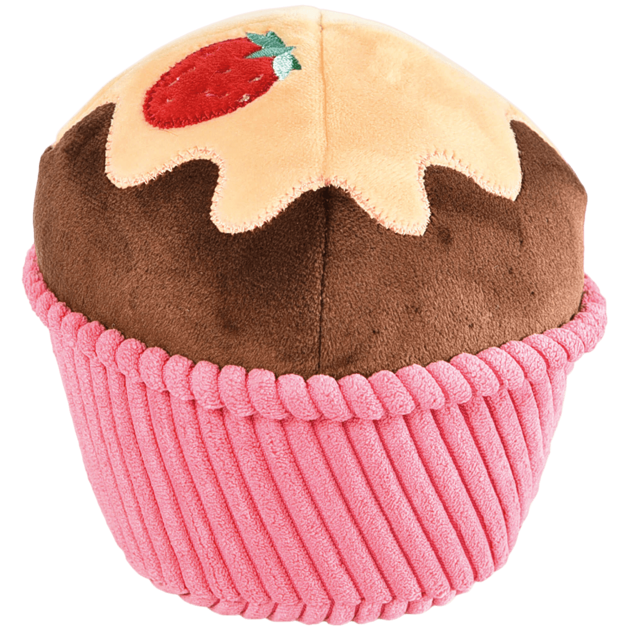 Este juguete tiene un diseño encantador de cupcake con base de pana rosa, cobertura de chocolate y una fresa bordada en la parte superior. Su textura suave es ideal para que tu perro lo use como juguete de apego o para morder suavemente. Con un tamaño de 14 cm, es perfecto para razas pequeñas y medianas que buscan un reto diferente.