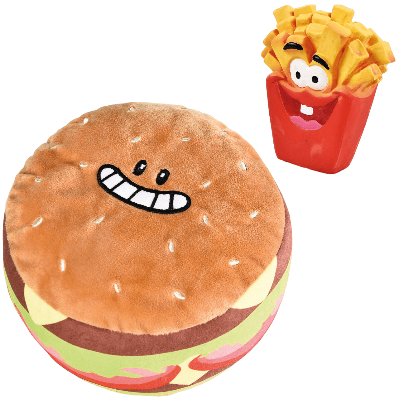 - Diversión 2 en 1: Una hamburguesa de peluche que esconde un paquete de patatas en su interior.