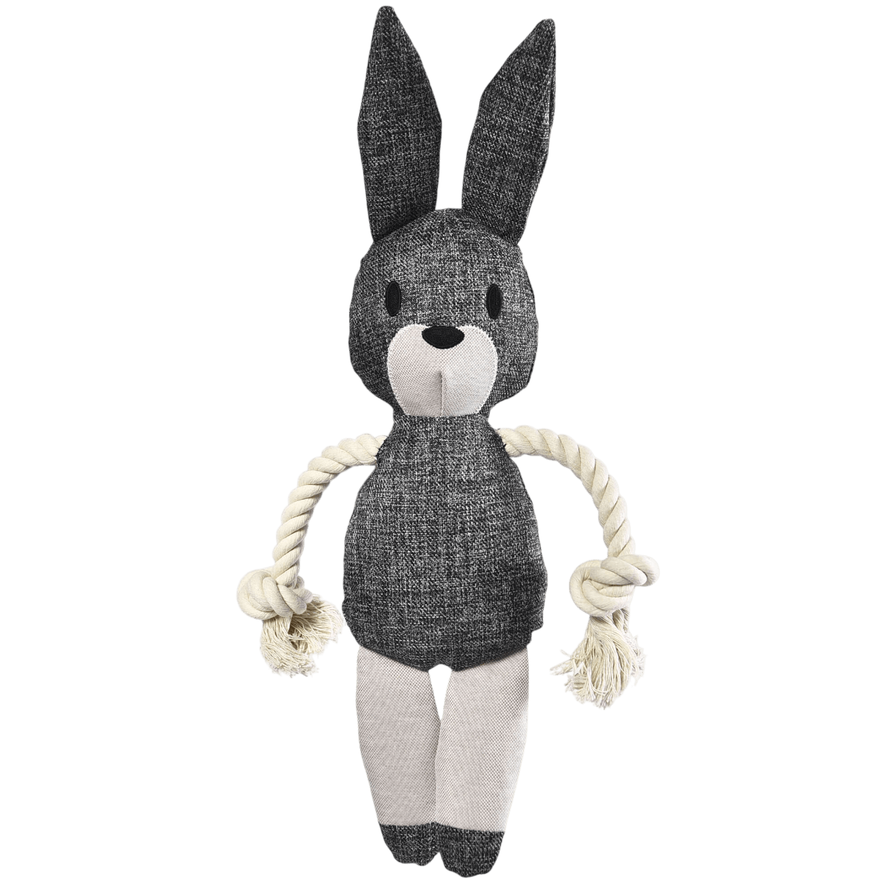 Este conejo no es un peluche cualquiera; está pensado para el juego activo. Sus brazos y piernas son cuerdas de algodón trenzado con nudos en los extremos, lo que permite a tu perro sacudirlo, tirarlo y morderlo con ganas, ayudando colateralmente a su higiene dental. Además, incorpora un emisor de sonido en su interior que se activa con cada mordida, despertando la curiosidad de tu mascota y prolongando las sesiones de juego. Con un tamaño de cuerpo de 10 cm y unas orejas largas y expresivas, es el juguete de tamaño perfecto para perros pequeños y medianos. ¡Súmate al juego sostenible con XT-DOG y Anlú!