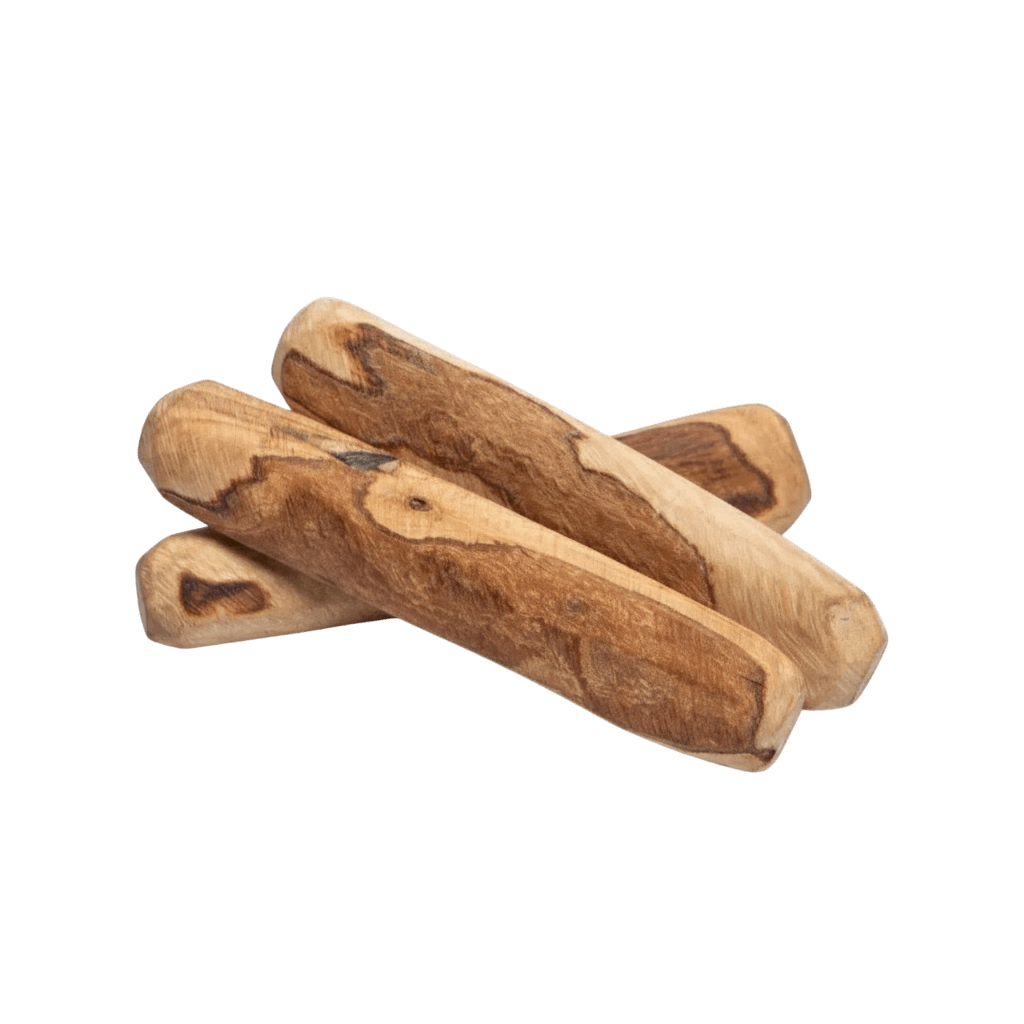 El proceso de elaboración es completamente artesanal: la madera se corta, se eliminan impurezas y se somete a un secado riguroso, lo que garantiza su dureza y durabilidad. Para potenciar su sabor natural y hacerlo aún más irresistible, se impregna con aceite de oliva, que es una fuente natural de Vitamina E, beneficiosa para la vitalidad y el brillo del pelaje.