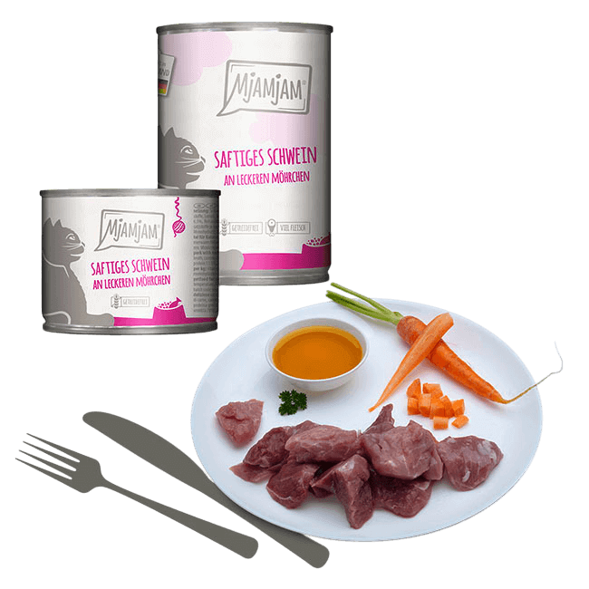Si buscas una Comida Húmeda Gato Cerdo Zanahoria, esta receta de MjAMjAM es un alimento completo y sin cereales que combina jugoso cerdo con verduras frescas, siendo una tentación natural para tu gato adulto.