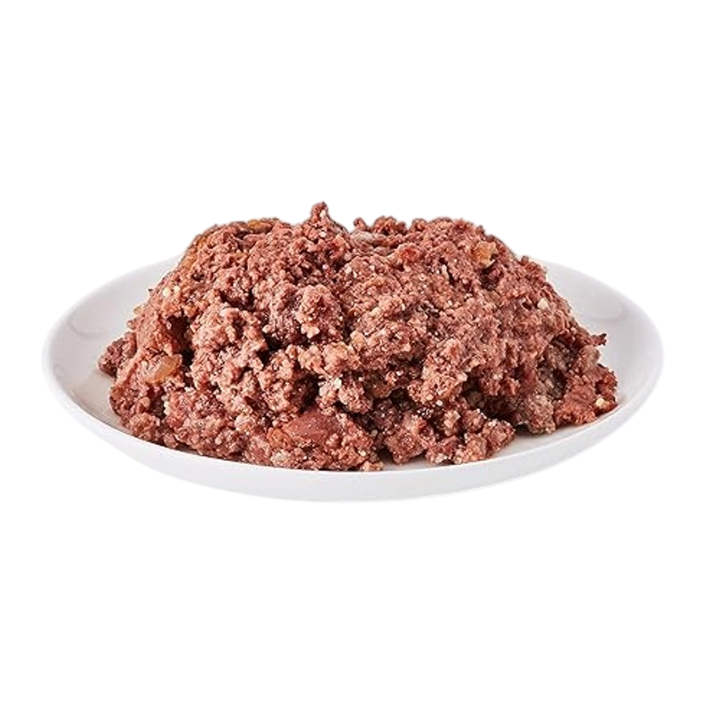 COMPOSICIÓN: Carne de res, pulmones y corazones (55%), caldo de carne (23%), hígado de pollo (17%), calabaza (4%), minerales (1%).