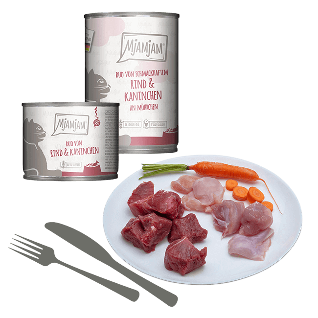 ¡Doble sabor, doble diversión! Si buscas una Comida Húmeda Gato Ternera Conejo, esta receta DUO de MjAMjAM combina la ternera familiar con la carne exótica del conejo en una comida completa y natural.