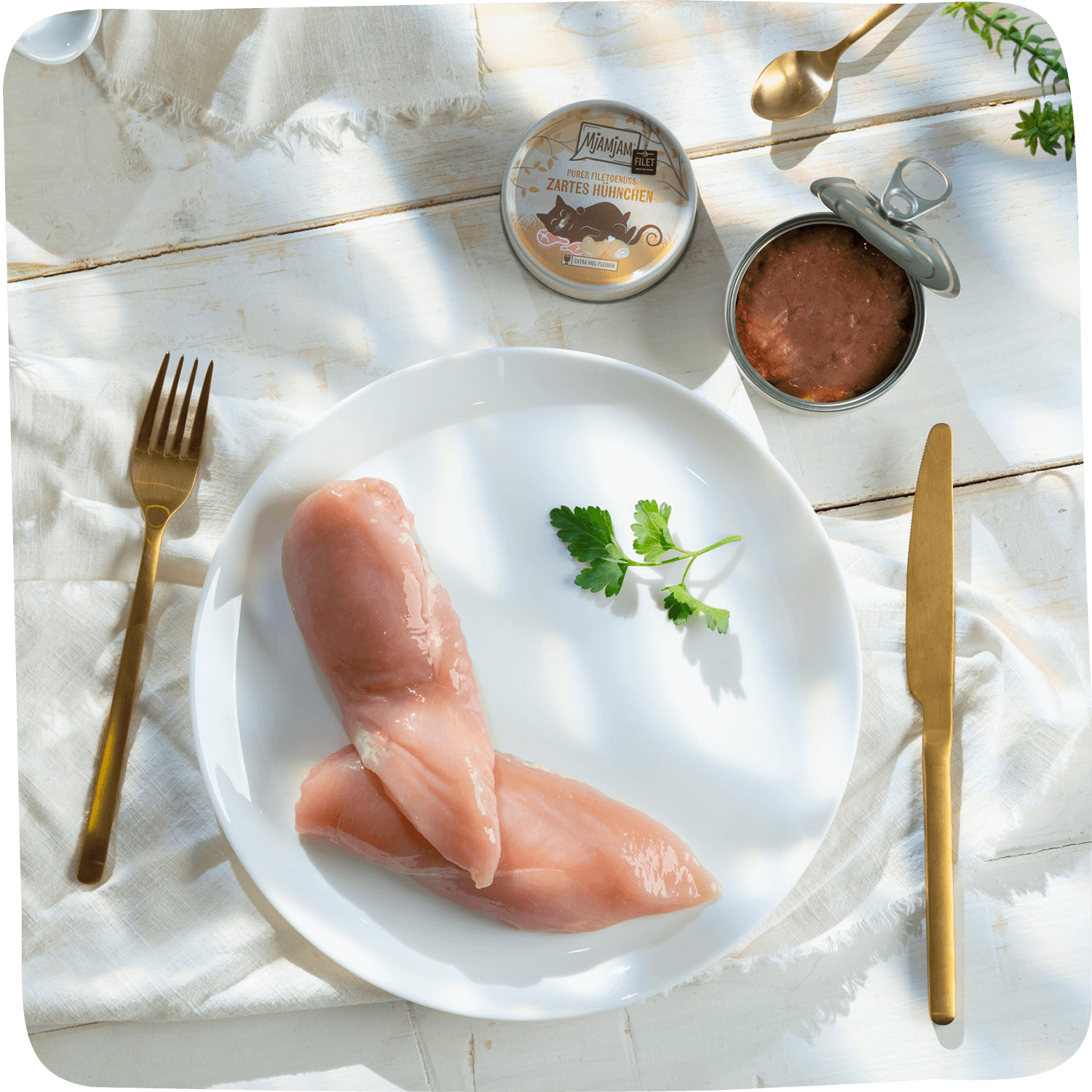 MjAMjAM – pura indulgencia de filete – pollo tierno. Los amantes de la gastronomía saben lo que quieren: ¡Ñam! Por ello, nuestro capricho de filete puro es solo para verdaderos gourmets. Esta exquisitez también impresiona con su carne extra y su delicioso sabor. Si tu gato es un sibarita, el MjAMjAM Filete Pollo Gato se convertirá en su favorito. ¿Te apetece un pollo tierno para cenar? ¡Añádelo a tu carrito ya!