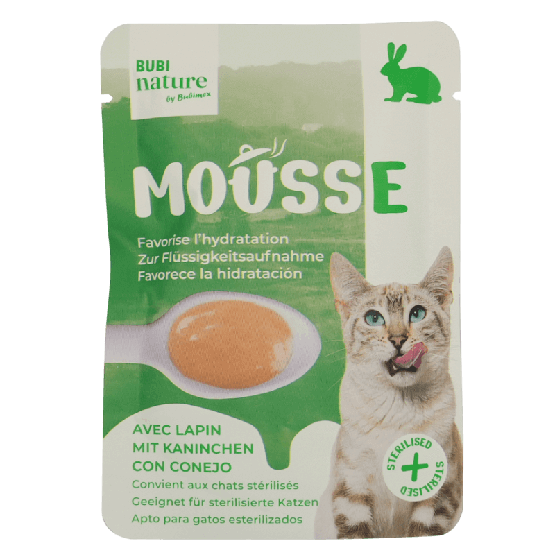 La Mousse Gato Conejo Pollo de Bubi Nature se presenta como una opción gourmet para los felinos que disfrutan de texturas suaves y sabores novedosos. Este alimento complementario es la elección perfecta para satisfacer a los paladares más exigentes, gracias a su innovadora textura cremosa y suave, que garantiza una experiencia gustativa superior y una fácil ingesta. Es una ventaja crucial para gatos con apetito reducido, aquellos que están convalecientes, o los gatos senior que puedan tener sensibilidad o problemas dentales.