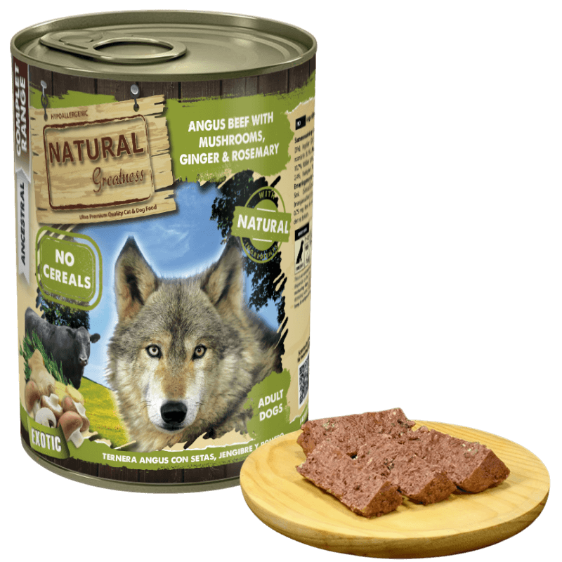 Natural Greatness Húmedo Ternera Angus Monoproteico es una receta completa, Ultra Premium e hipoalergénica diseñada para perros adultos con sensibilidad alimentaria y para los paladares más exigentes.