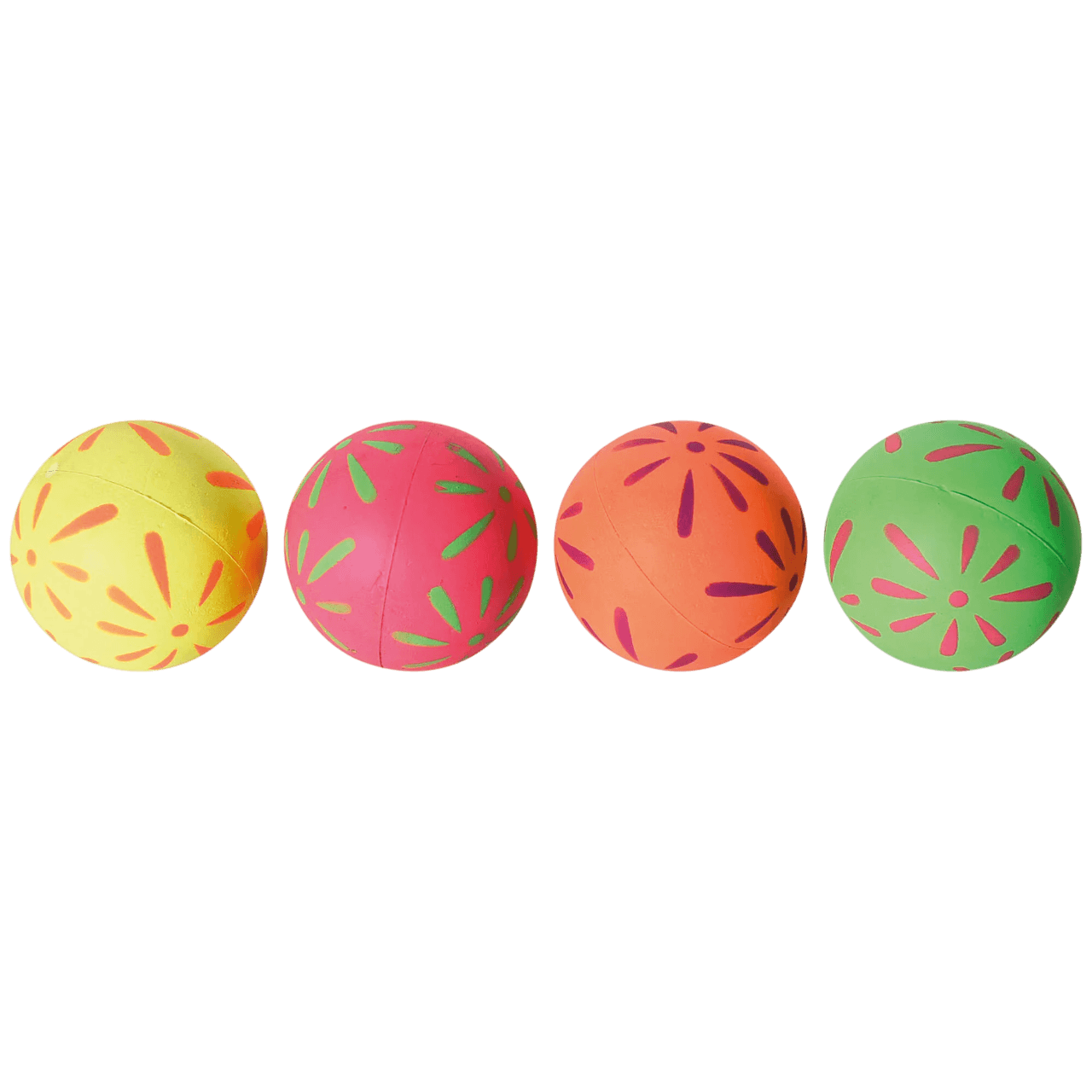 Su diseño destaca por sus colores vibrantes y contrastados (disponible en amarillo, rosa, naranja y verde) decorados con un simpático patrón de flores. Esto no solo las hace atractivas a la vista, sino que facilita que puedas localizarlas rápidamente bajo los muebles o en el jardín. Están fabricadas con un material elástico que proporciona un rebote divertido e impredecible, estimulando el instinto de persecución de tu mascota. ¡Haz que cada lanzamiento cuente con la calidad de Anlú!