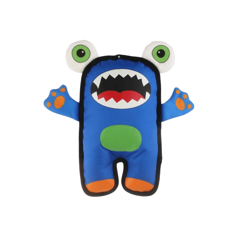El diseño del Peluche Monstruo Azul Resistente es tan cautivador como funcional. Sus colores vibrantes (azul, naranja, verde) lo hacen visible y atractivo. Presenta unos ojos saltones y una boca grande y divertida, que aumentan la motivación de juego. Su tamaño de 24 x 24 cm es perfecto para perros medianos y grandes que necesitan un objeto que puedan agarrar y manipular fácilmente, promoviendo el ejercicio físico y la liberación de energía. Proporcionarle a tu perro un juguete como este es fundamental para satisfacer su necesidad de juego y evitar que centre su atención en objetos inapropiados de la casa.