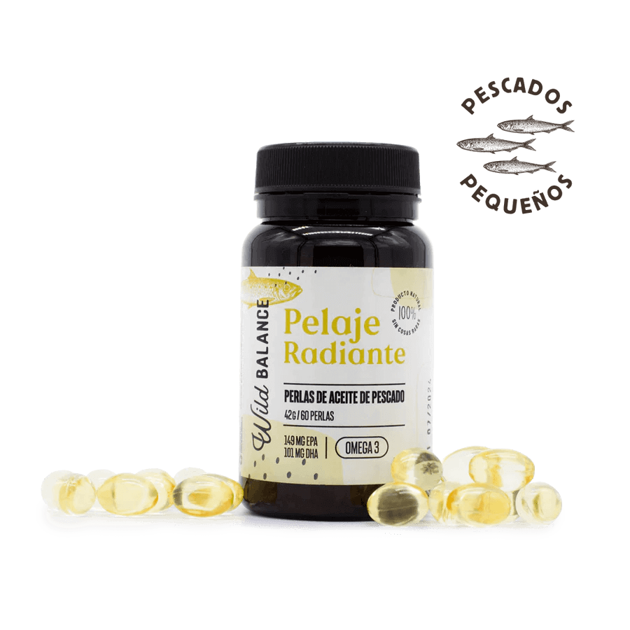 Las Perlas Omega 3 Perro y Gato Pelaje Radiante de Wild Balance ofrecen una forma sencilla y eficaz de incorporar ácidos grasos esenciales a la dieta de tu mascota. Estas cápsulas de aceite de pescado de alta calidad son un suplemento completo diseñado para aportar un brillo extraordinario al pelaje mientras cuidan de la salud interna de tu peludo.