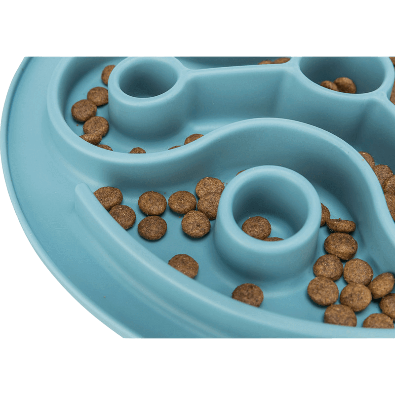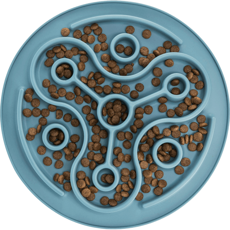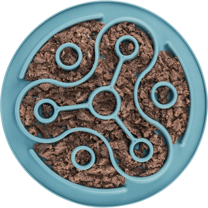 - Previene la Ingesta Rápida: Su diseño con texturas y divisiones obliga a tu mascota a comer más despacio, lo que previene que engulla los alimentos y reduce el riesgo de problemas digestivos como atragantamiento, gases e hinchazón.