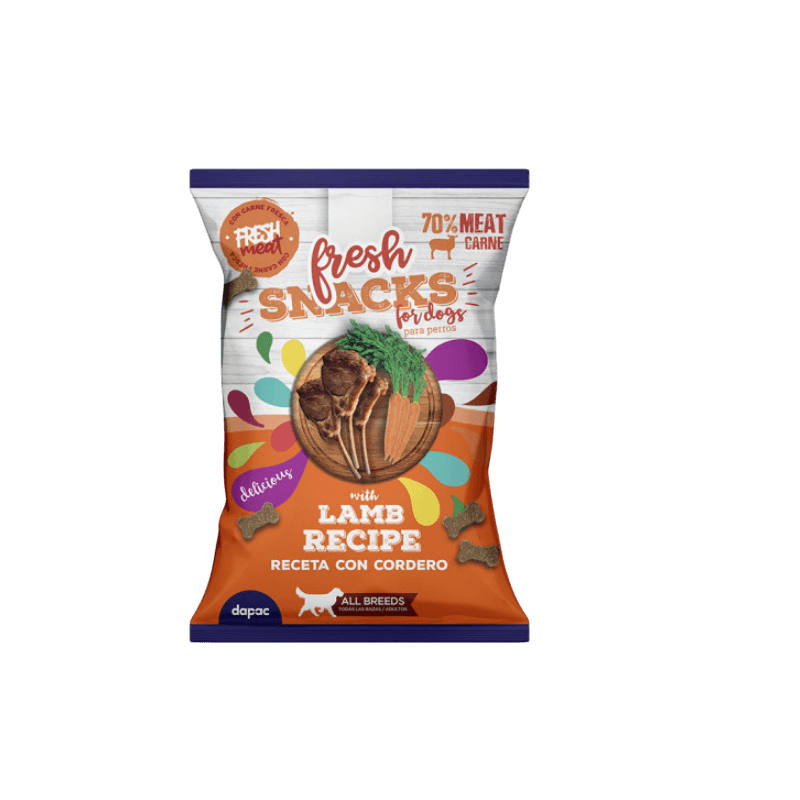 El Snack Perro Cordero Semihúmedo de Fresh es un premio de alta palatabilidad, diseñado para satisfacer a perros adultos y ofrecer un refuerzo positivo nutritivo. Estos tiernos huesitos destacan por su alto porcentaje proteico, con un mínimo de 70% de carne y un 20% de cordero como ingrediente destacado. El cordero es una fuente de proteína muy apreciada por su sabor y su perfil nutricional completo.